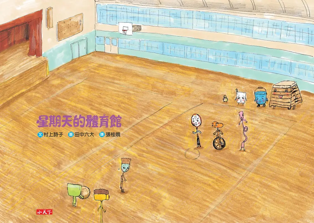星期天的體育館熱鬧滾滾,體育器材和掃除用具正在玩躲避球。