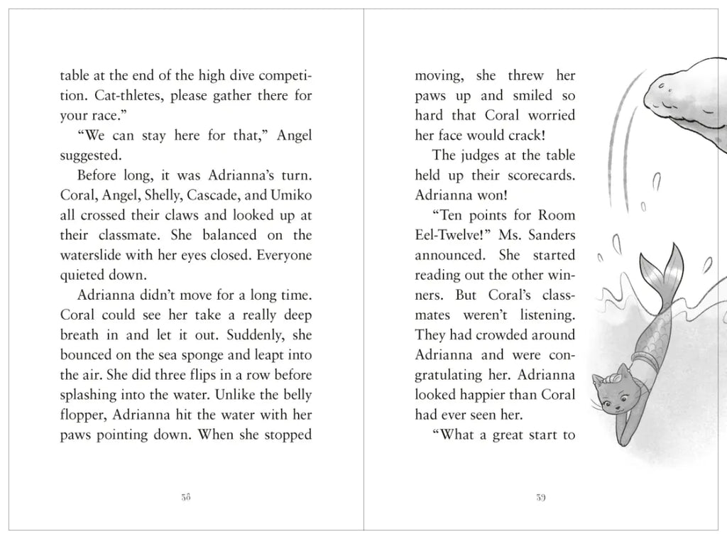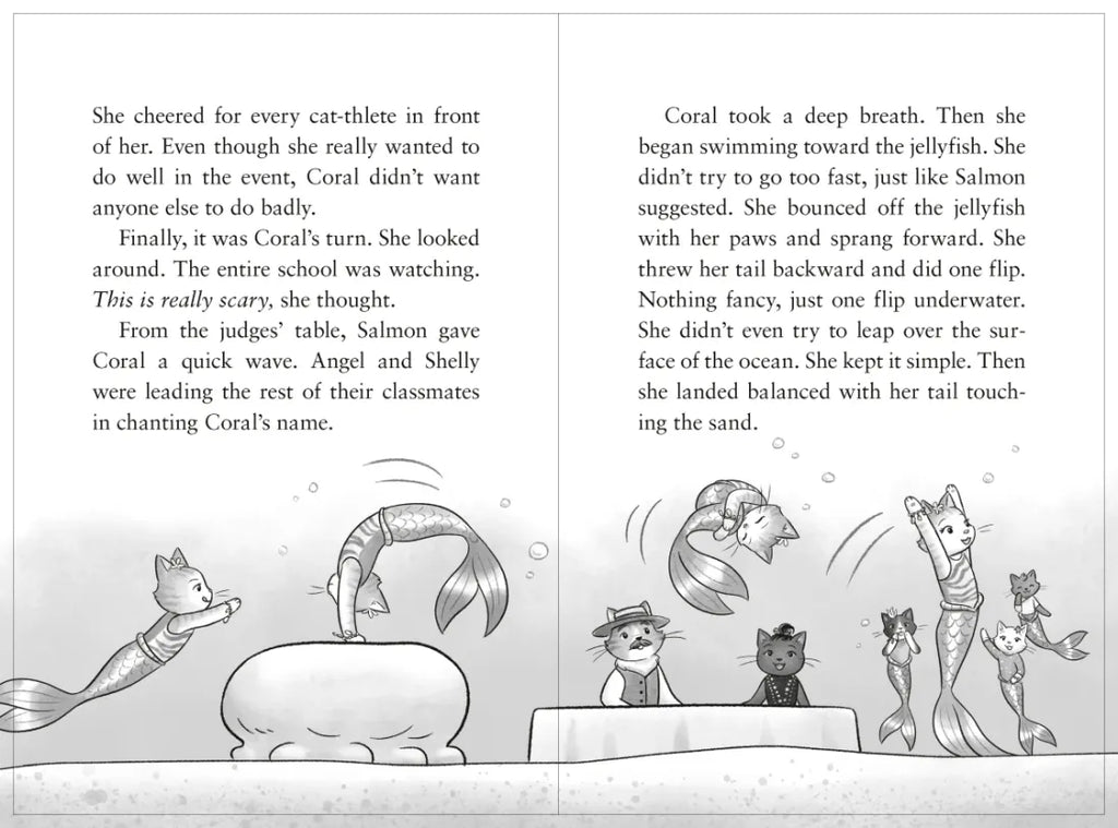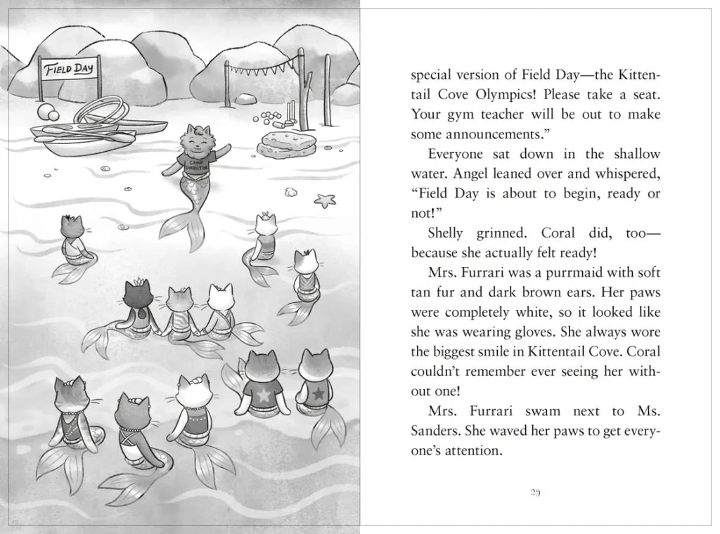 It's time for the summer Olympics and Kittentail Cove is ready to celebrate! A hometown Olympic hero will be hosting a field day at Sea School and best friends Coral, Shelly, and Angel are excited to try all kinds of fun sports. But when Coral makes the swim-nastics team and Shelly and Angel don't, she'll have to overcome her fears and learn to work with her new team if they want to win.