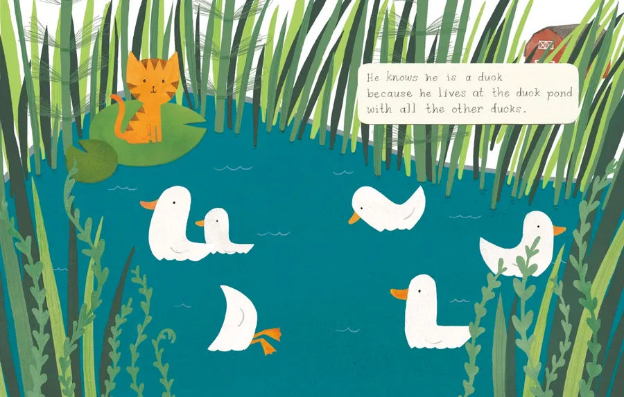 Then Quackers meets another duck who looks like him (& talks like him, too!)—but he calls himself a cat. So silly!