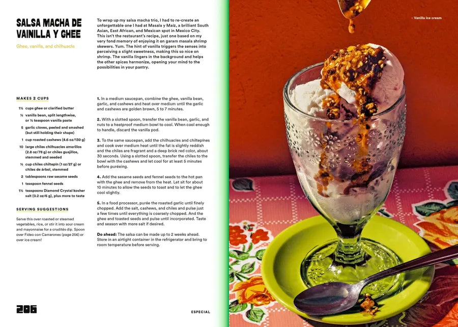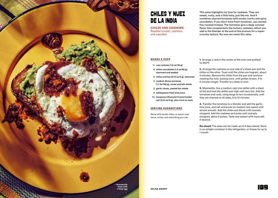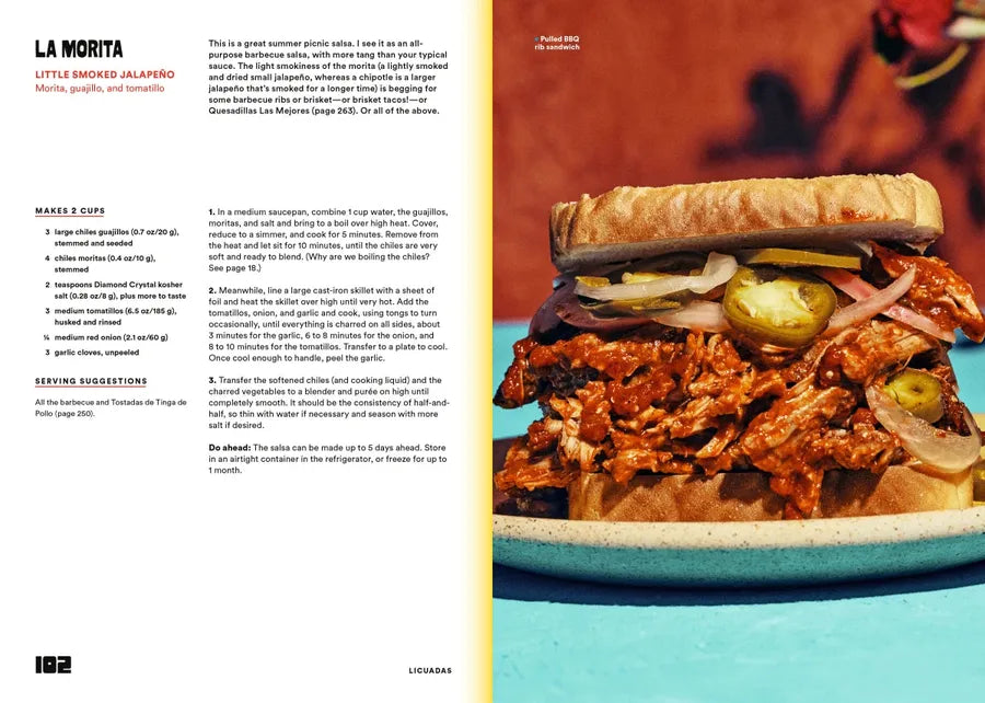 Rick takes us deep into the world of traditional and modern salsas, where a playful pico de gallo with tomatoes, avocados, and chipotles is chopped up in a few minutes or where you might blend roasted peanuts with caramelized onions and toasted chiles for a nutty-savory spicy sauce. You’ll find smashed salsas, like La Tatemada Cremosa (charred tomato, chipotle in adobo, and crema), chopped salsas, such as Xnipec (tomato, habanero, and sour orange), as well as cooked salsas, like Pipián Verde (pepitas, peanuts, and tomatillo) and specials like Salsa Macha (peanuts, guiajillo, and chile de árbol) and Aioli Rojo (morita, guajillo, garlic, and lime). Turn these incredibly delicious salsas into easy meals like Chilaquiles, Enchiladas Gratinadas, Puffy Tacos, or Pozole Verde con Pollo.