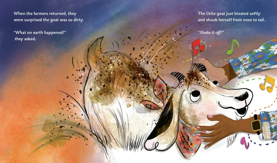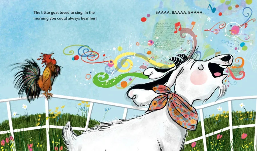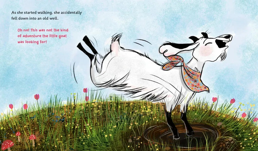 Meet a sweet, curious little goat, who loves to sing and climb on everything. Some neighbors find her annoying, but nothing can keep her down—even when she gets stuck in a well and it looks like she’s doomed. When everyone has given up on her, the clever goat surprises them all by taking advantage of her precarious predicament to win the day!