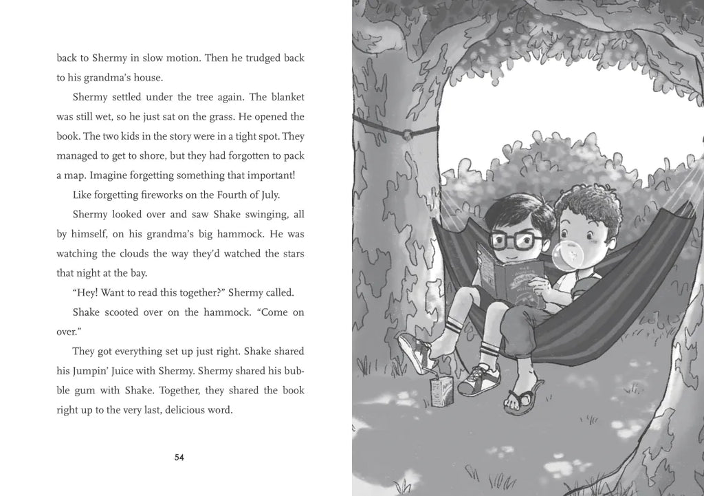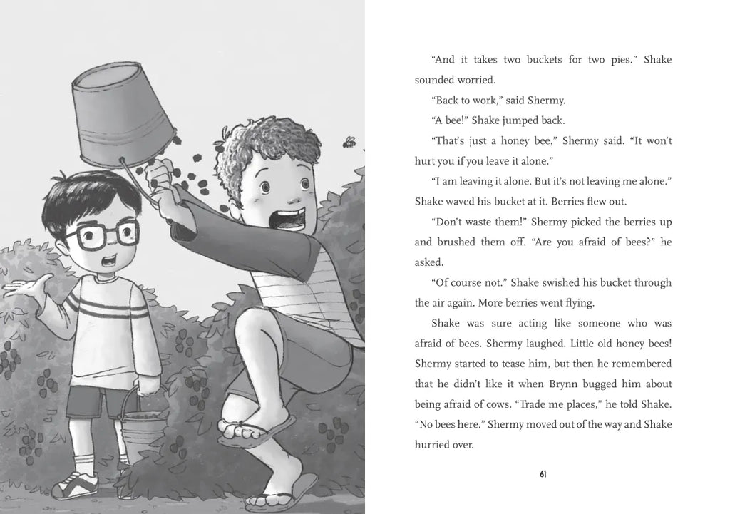 The new kid next door, Shake, is nothing like Shermy. And Shermy is nothing like Shake. It might take all summer for the two boys to figure out how to get along—right in time for Shake start at Shermy’s school! Uh-oh. Will they manage to strike up a friendship—and if they do, can the friendship last? Enjoy two books in one from Newbery Honor–winning author Kirby Larson and illustrator Shinji Fujioka.