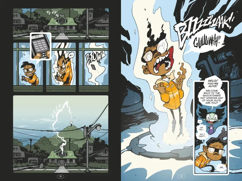 “Equal parts nightmarish and outrageously funny, this graphic novel adventure is a thrilling joyride through an electrifying world!”—Max Brallier, #1 New York Times bestselling author of The Last Kids on Earth