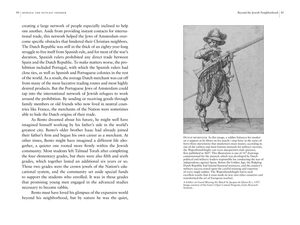 What caused such an uproar? Spinoza challenged age-old ideas about God, the Bible, and religion. His God was the sum total of nature, not a father-figure who created the world and takes care of humankind. His bible was a book like any other, not a holy text to be interpreted only by religious authorities. His religion was a commitment to basic moral behavior, not a collection of superstitions or rituals. For such ideas, Spinoza was reviled, but he emerged from his experience as one of history's most articulate voices for freedom of thought, freedom of expression, and freedom of religion. Those of us who enjoy the fundamental rights of modern democracies are the beneficiaries of Spinoza's quiet bravery.