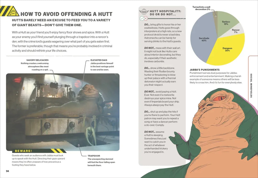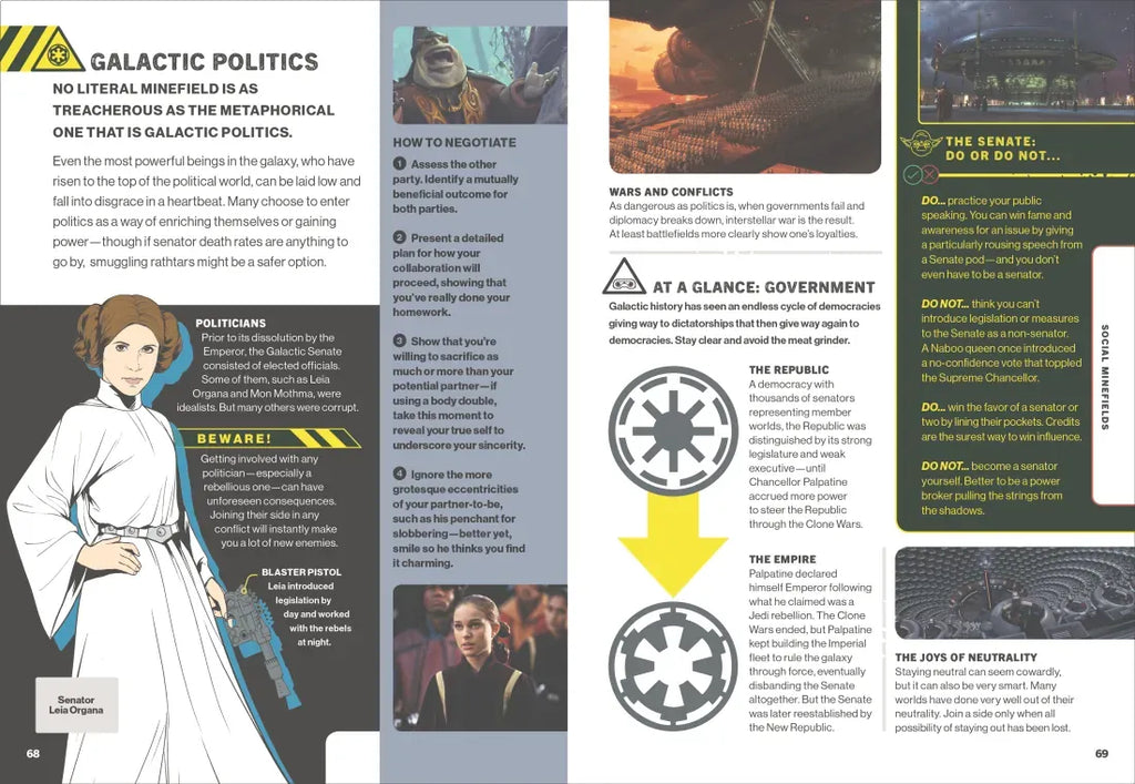 The Star Wars galaxy is a dangerous place. From ruthless bounty hunters, ferocious beasts, and extreme weather, to hostile landscapes, social minefields, and backstabbing allies-perils and hazards are never far away! How do you flee an exploding Death Star? What's the best way to source a starship at a spaceport? How would you escape kidnap by Tusken Raiders on Tatooine? Survival means keeping your wits about you. This fun, practical Star Wars book will teach you how to recognise threats and learn what to do to stay alive in a galaxy far, far away.