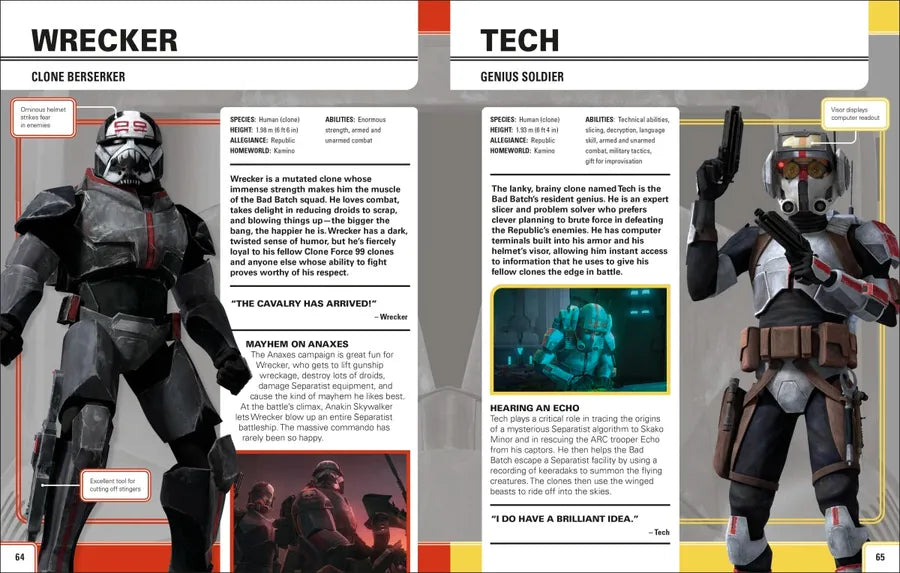 To learn the answers to these questions and more, look no further than Star Wars: The Clone Wars: Character Encyclopedia – Join the Battle! Written by Star Wars expert Jason Fry, this illustrated encyclopedia features more than 350 incredible characters and teams, including Anakin Skywalker, Maul, Bo-Katan Kryze, and Clone Force 99.