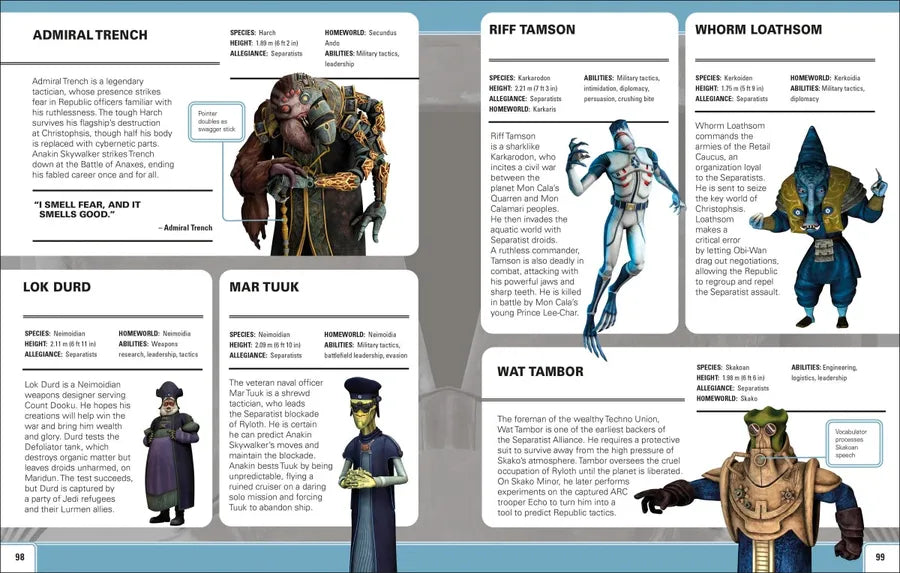 Meet more than 350 incredible clones, Jedi, droids, bounty hunters, and a host of other characters from Star Wars: The Clone Wars.