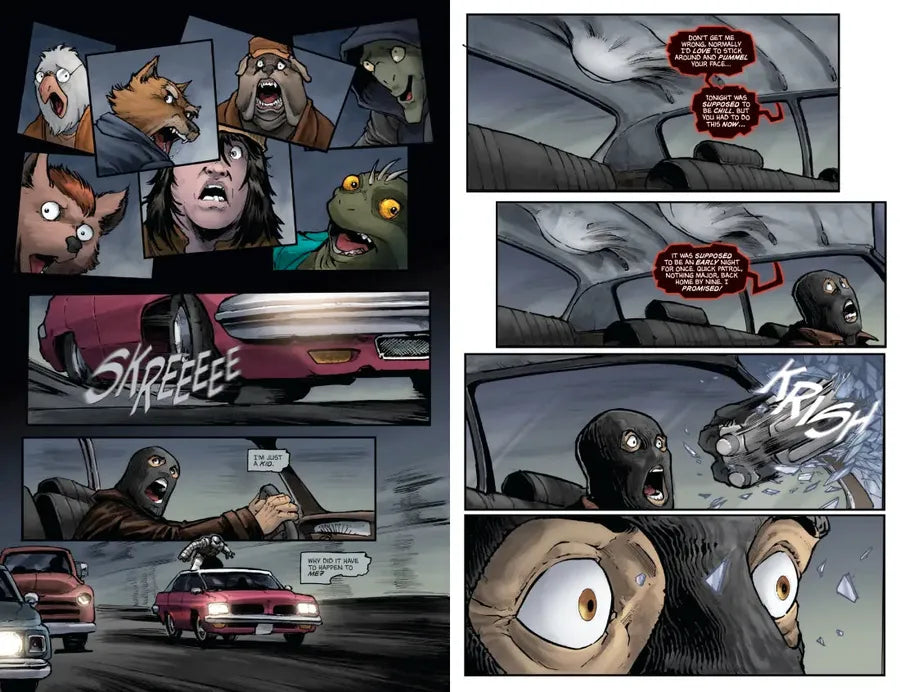 Violence and discrimination against mutants are running wild, and a new vigilante will rise up to combat it…but who is this fearsome armored fighter standing bravely against the criminals who wish to harm mutants? As life in New York City marches on, with the Teenage Mutant Ninja Turtles scattered, the mutant population is more vulnerable than ever. The community needs a defender, and as the police struggle to address rising crime rates against mutants, someone else has to step up. A new symbol of safety and justice is born in the shadows, but even the best intentions can lead to unforeseen consequences…