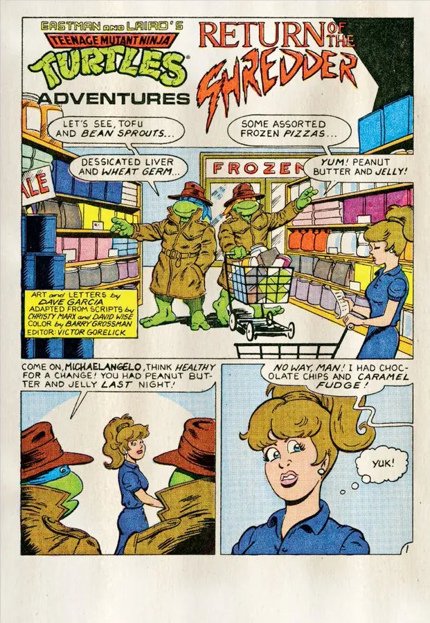 First, from TMNT: Adventures, the Turtles’ biggest enemy is back in “Return of the Shredder!” But with a gang of criminals dressed like them committing crimes at the same time, the boys will have a lot on their plates besides pizza! Then, introduce yourselves to the Turtles from Rise of the TMNT as they go on their first mission, mystic style! April is on the tail of a pesky oozesquito while the brothers encounter some mutant silverfish. In the finale from TMNT: Amazing Adventures, Mikey is feeling a little bored, so he decides to make his own comic!
