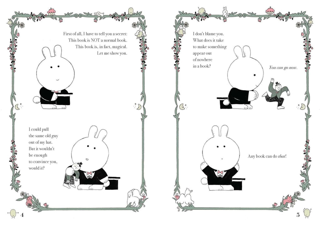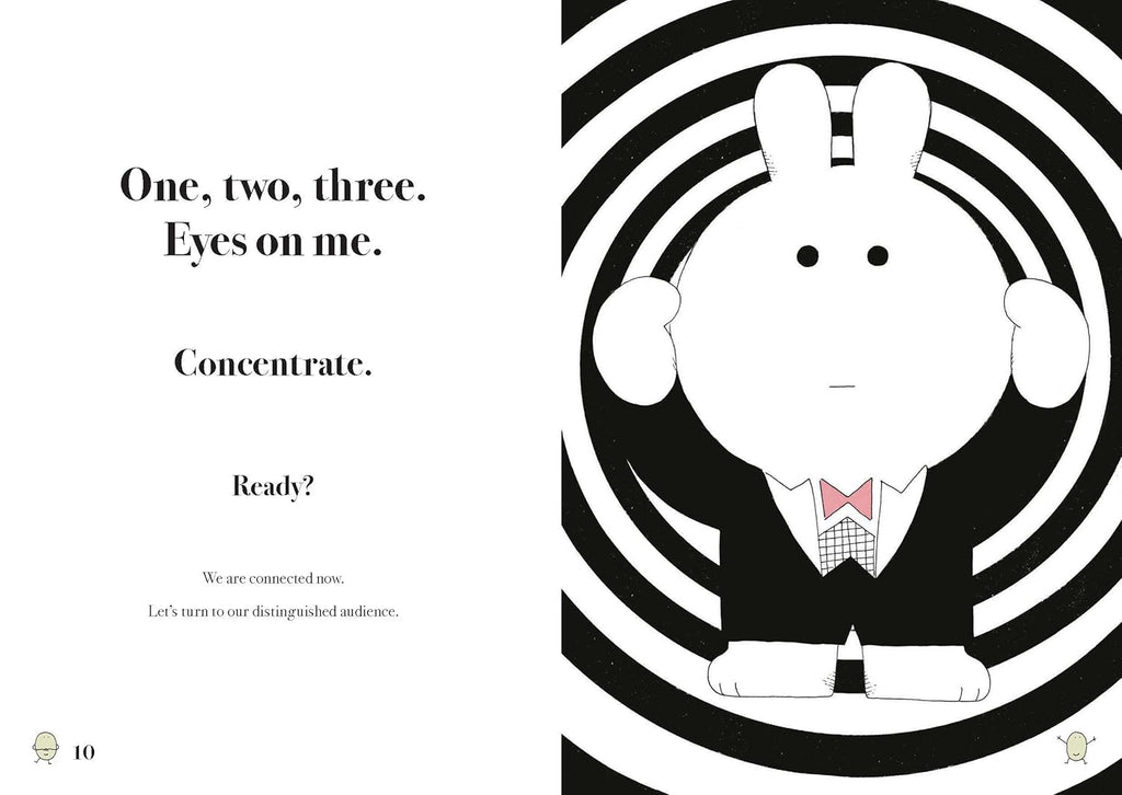 This is not an ordinary book—it’s a magical one! Lady Rabbit goes beyond pulling a rabbit out of a hat or making herself disappear. For her next act, she will READ YOUR MIND! That's right: You pick a member from the magician's adorable audience—don’t tell which one you’ve chosen—and this book will guess who it is!