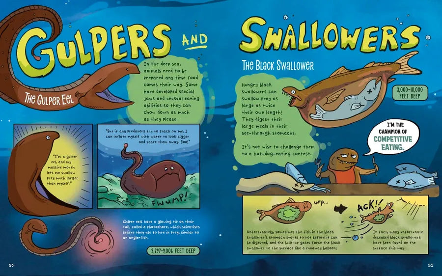 The Deep! is a rollicking survey of animals that live in the deepest part of the ocean created in an exciting graphic nonfiction format. The first-person commentary by the animals themselves cover a wealth of facts from the surface of the ocean to the darkest trenches. And the beautiful full-color illustrations bring them to life.
