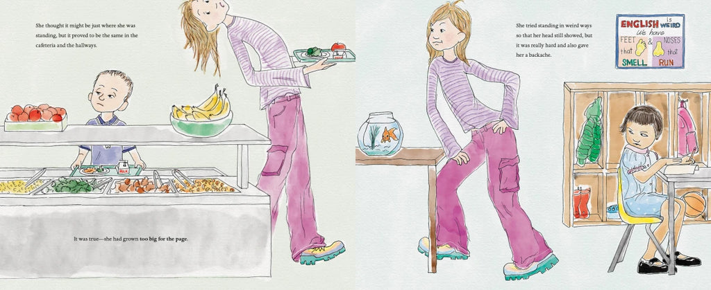 She does some typical little-kid things, like learning to walk, saying her first words, eating pizza . . . starting school and making new friends.