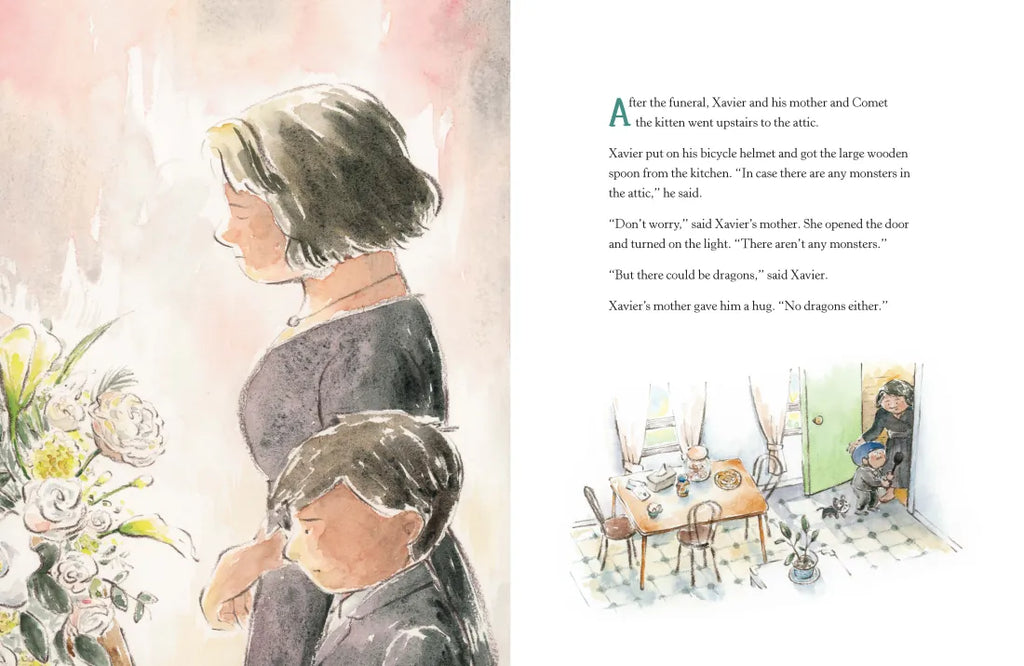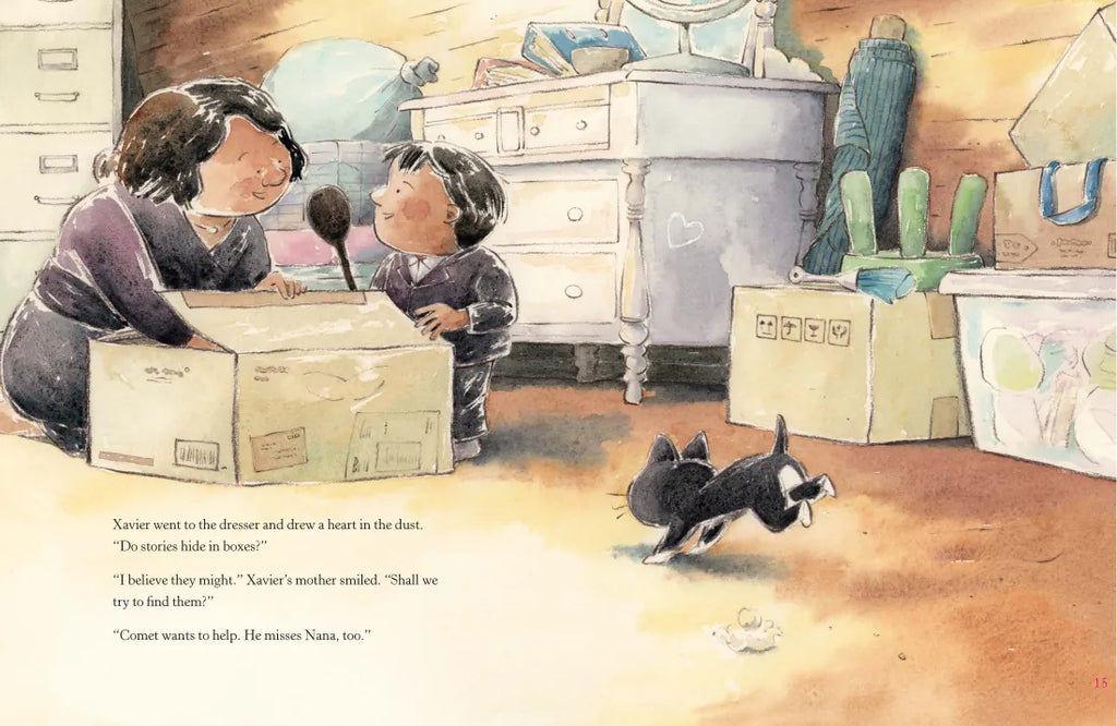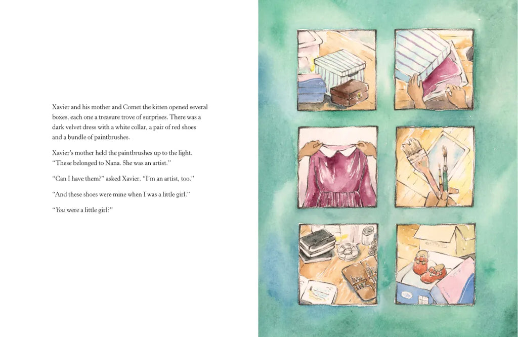 After Nana passes away, Xavier, his mother and Comet the kitten all head up to Nana's attic to help clean it up.