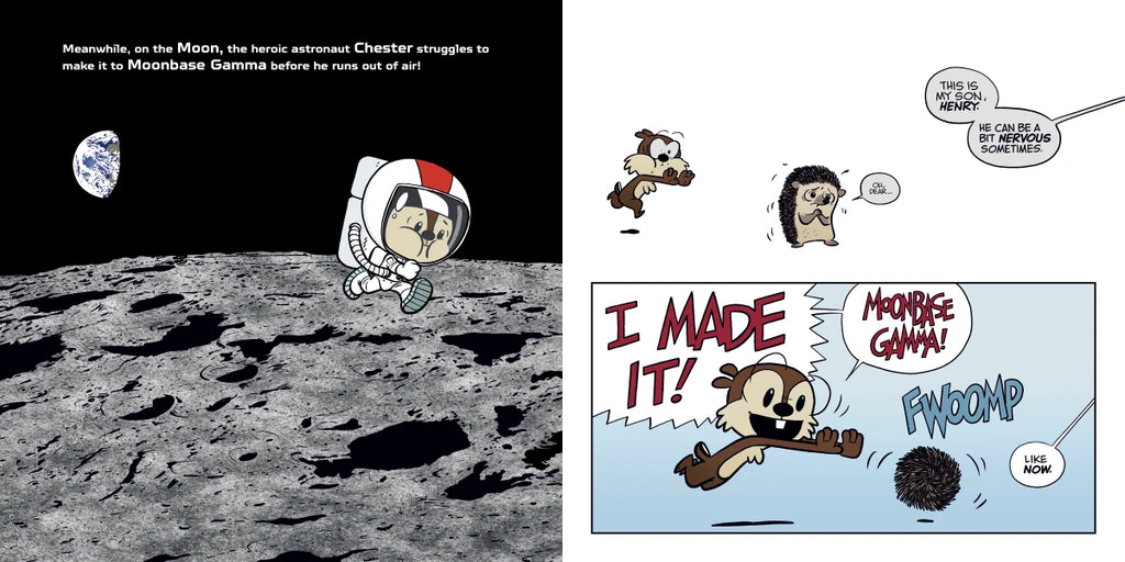 It doesn’t take much for Henry, an introverted young hedgehog, to roll up into a tight ball of anxiety. And now he’s on a nerve-wracking playdate with a new neighbor, a very energetic chipmunk named Chester. Chester wants to go on all kinds of imagined adventures in the backyard, but Henry much prefers the safety of experiencing adventure in the pages of a book. What’s more, he’s afraid that if he expresses his own creative ideas Chester will think he’s silly and uncool. But with the help of a “magic” stick, a lizard who knows she’s actually a dragon, and the encouragement of rambunctious Chester, Henry just might find his bravery and save the playdate!
