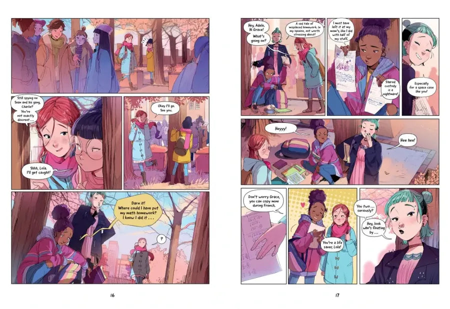 BFFs Grace and Lola are back in volume two of The Love Report. Grace tries to adjust to her parents' split, but dividing her time between two homes is no fun; Lola and Grace help Adele find a place to stay–an old factory–to escape her evil stepmother; and Lola wants to help Felicity after one of the boys begins harassing her, but it’s not easy. Summer comes just in time, and the change of season brings the girls and Adele to the island of Sardinia, where they continue to discover the ins and outs of love and romance far from home and school.