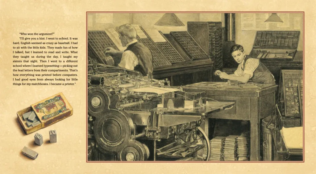When a little girl visits her great-grandfather at his curio-filled home, she chooses an unusual object to learn about: an old cigar box. What she finds inside surprises her: a collection of matchboxes making up her great-grandfather’s diary, containing objects she can hold in her hand, each one evoking a memory. Together they tell of his journey from Italy to a new country, before he could read and write – the olive stone his mother gave him to suck on when there wasn’t enough food; a hairpin he found on the boat; a ticket still retaining the thrill of his first baseball game. With a narrative entirely in dialogue, Paul Fleischman makes immediate the two characters’ foray into the past. With warmth and an uncanny eye for detail, Bagram Ibatoulline gives expressive life to their journey through time – and towards each other.
