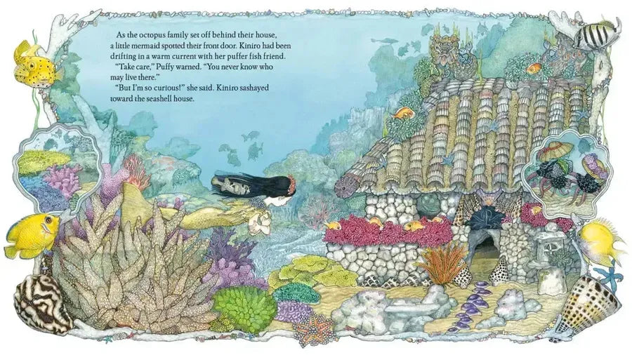When Kiniro, a young mermaid, comes upon a gorgeous house made of seashells and coral, she is so curious that she goes inside. She’s thrilled to find a just-right breakfast, pretty little chair, and, best of all, a comfy bed that rocks in the current.