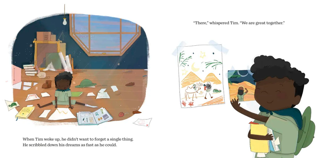 But when one day Dad is too busy to look at his findings, Tim takes it upon himself to show Dad all his adventures. And after looking through his dad’s old nature journals, Tim gets sleepy and goes on some dreamy adventures of his own.