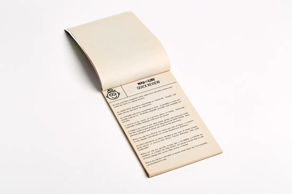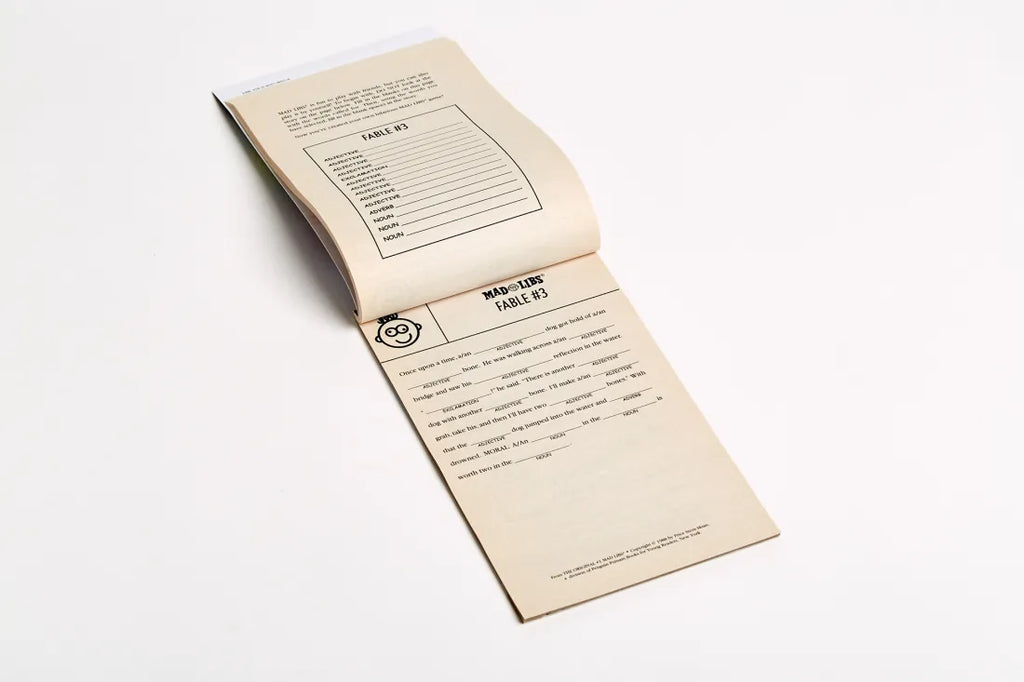 The idea is simple. Someone asks for a part of speech: a verb, a noun, an adjective, or an adverb. We've included definitions and examples of the parts of speech in case you've forgotten. Players call out their ideas to fill in the blanks and in the end, you have a story reeling from one silly sentence to another until nothing makes sense. That's what you call a Mad Lib®, the world's greatest word game. Players have been howling with friends or laughing all to themselves for over 35 years!
