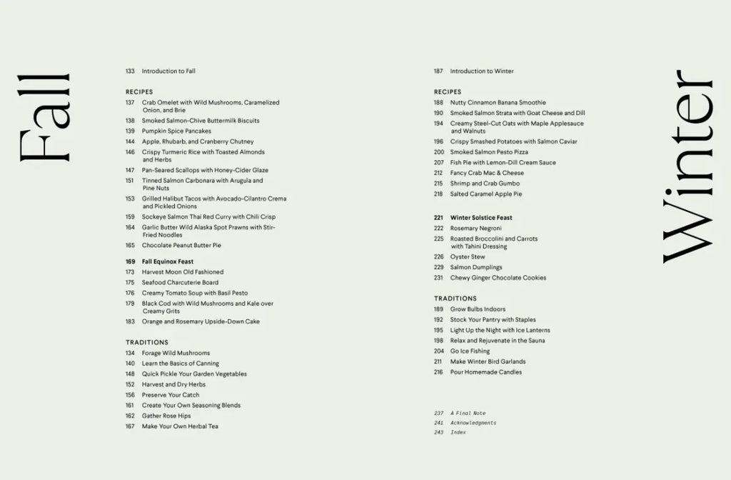 Follow the Salmon Sisters as they celebrate the seasons through the food, traditions, and rituals of their Alaskan home. Lush photography, charming illustrations, 60 comforting recipes, and 35 traditions showcase and honor the untamed spirit, natural bounty, and seasonal rhythms of land and sea.