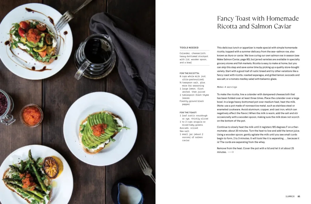 The recipes and projects are delicious and satisfying. For example, forage spruce tips and make Spruce Tip Ice Cream. Jig for a halibut and then make Halibut Burgers with Wild Chimichurri.