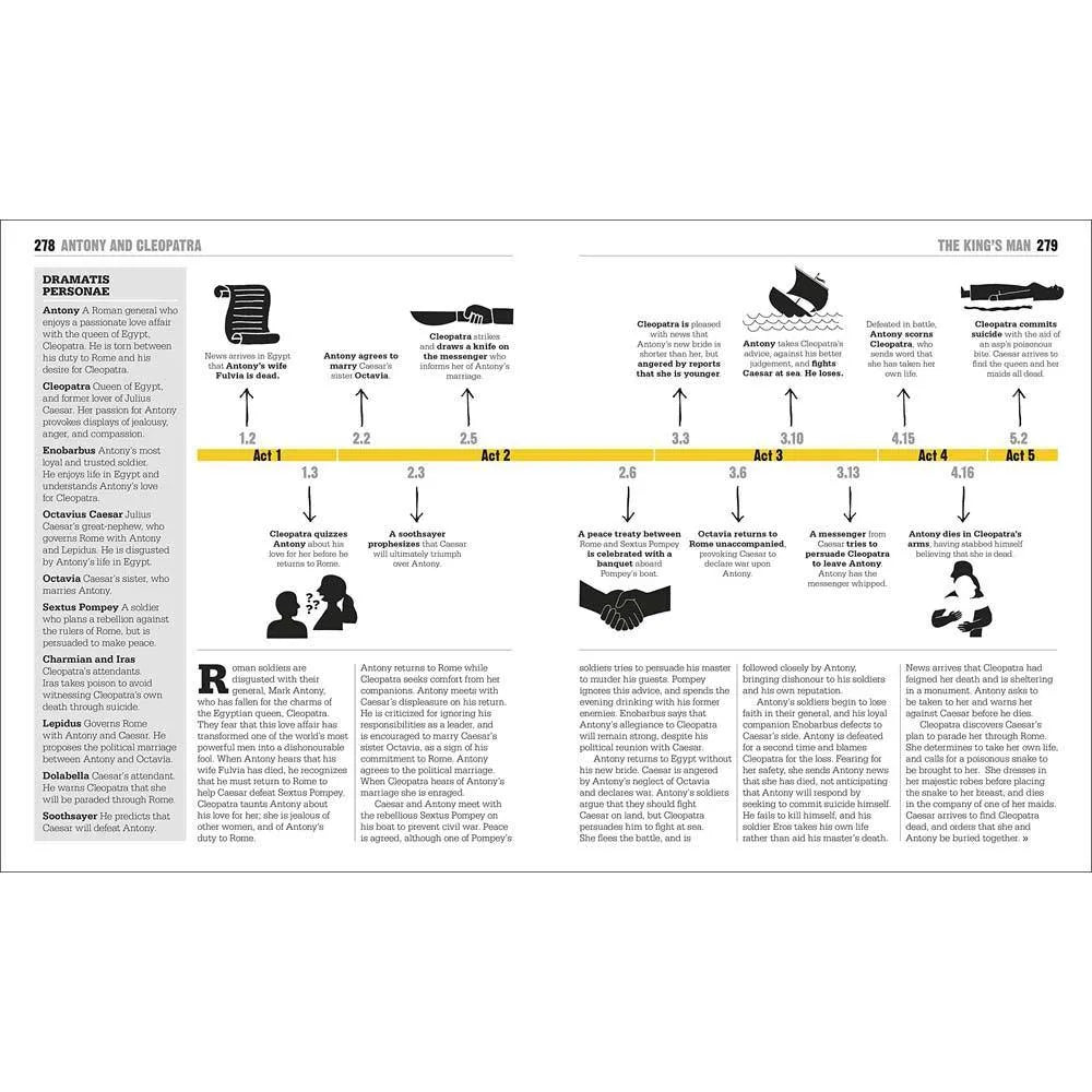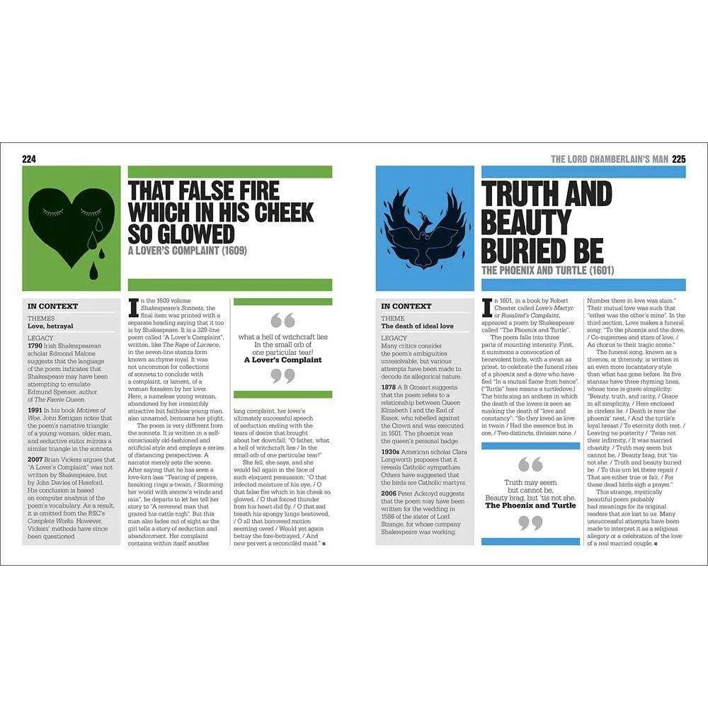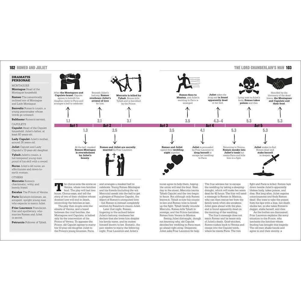 This is a brilliant, innovative exploration of the entire canon of Shakespeare plays, sonnets, and other poetry with detailed plot summaries and a full analysis of the major characters and themes. If you thought it was difficult to learn about the works of one of the greatest writers in the English language, The Shakespeare Book presents key information in a simple layout. Every work is covered, from the comedies of Twelfth Night and As You Like It to the tragedies of Julius Caesar and Hamlet, with easy-to-understand graphics and illustrations bringing the themes, plots, characters, and language of Shakespeare to life.