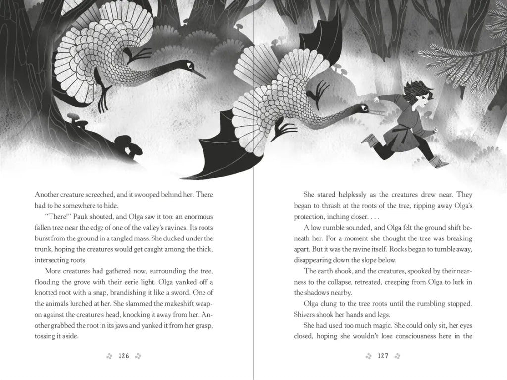 When Olga and her partner-in-crime Pavel learn of a valuable jewel kept in a secluded castle, Olga sees an opportunity to change their lives: a prize so big, they’d never have to steal again. But the castle is not as it seems, ruled by an enchanter who hosts grand balls every night, only for the guests to disappear each morning, replaced by swans. Guided by cryptic clues from the palace spiders, Olga soon realizes she’s in over her head—torn between a bargain with the enchanter, loyalty to Pavel, and determination to understand how the enchanted swans are linked to her own fate.