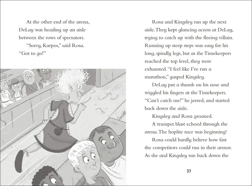 In this installment, The Timekeepers are tipped off that the Time Pirate DeLay is planning on sabotaging the first Olympic Games and need to put a stop to his plans! They travel back to ancient Greece to settle a dispute between Athens and Sparta at the Olympic Games. Can the Timekeepers end the conflict and protect the peace?