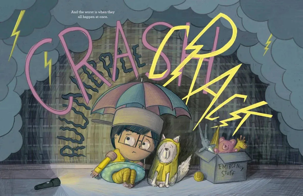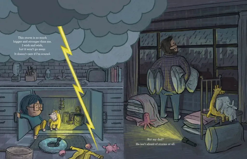 Storms can be scary. All those CRACKS and CRASHES and RUMBLES! So, one young girl does what anyone would do—hides under the kitchen sink, of course.