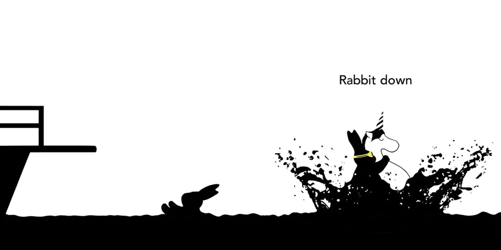 What goes up must come down! Hold your breath as the adventurous but accident-prone Rabbit discovers the Uh-oh! in see-sawing, swimming, skiing and speeding down slides! There's fun to be had in both the highs and the lows in Rabbit's carefree world.