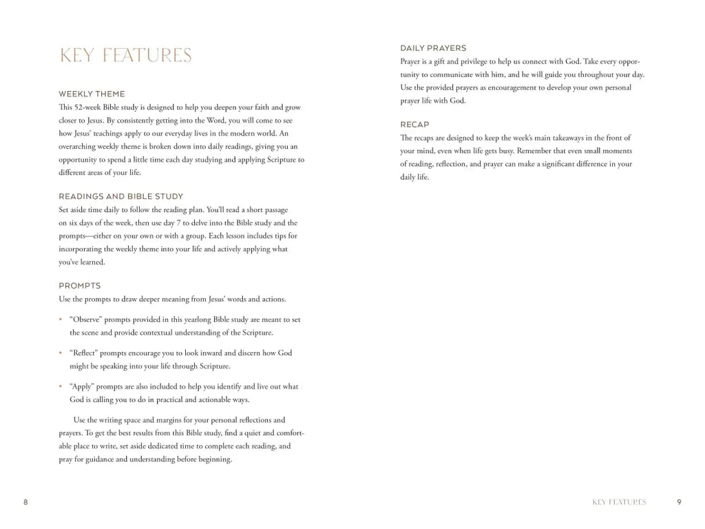 - 52 WEEKS OF BIBLE STUDY WITH GUIDED SCRIPTURE AND READING PLANS–dive deep into Jesus’s life in the books of Matthew, Mark, Luke, and John.
