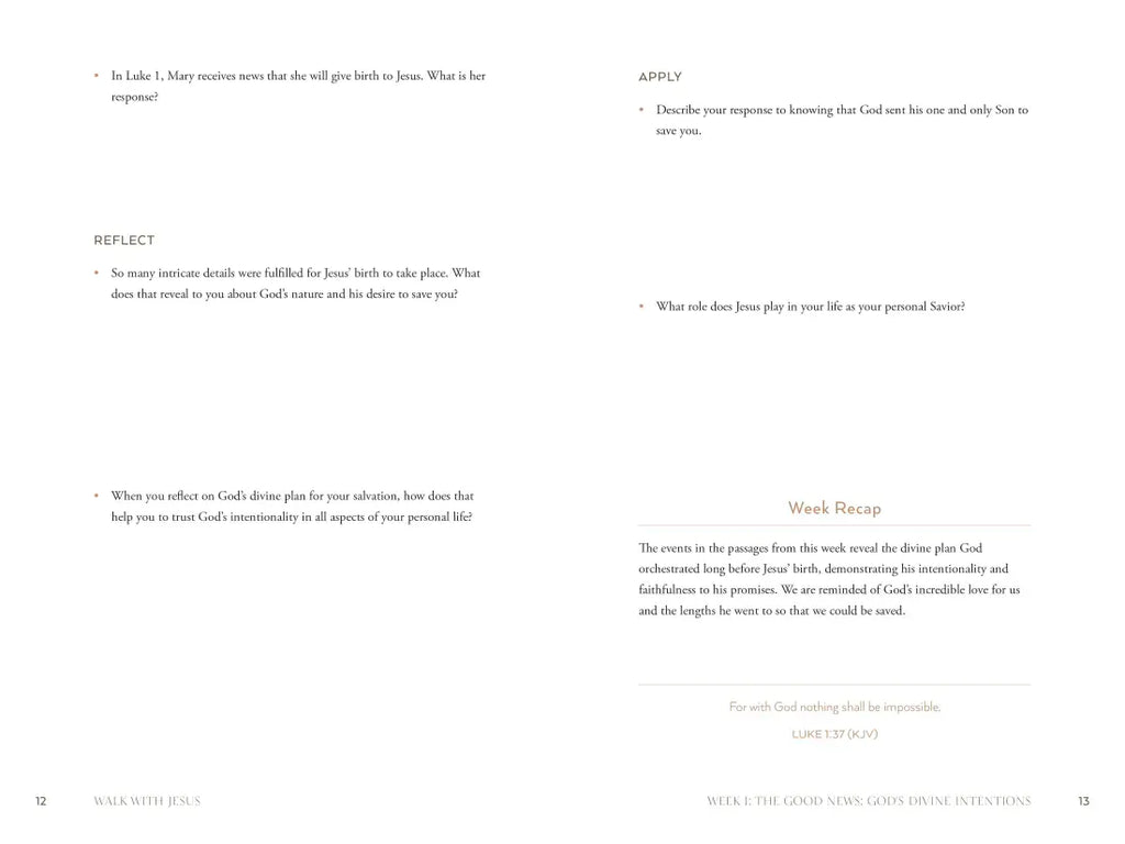 - AFFIRMING KEY VERSES & PRAYERS—meditate on God’s truths to remind women that Jesus is always near. Confide in him and focus on what’s most important throughout the week.