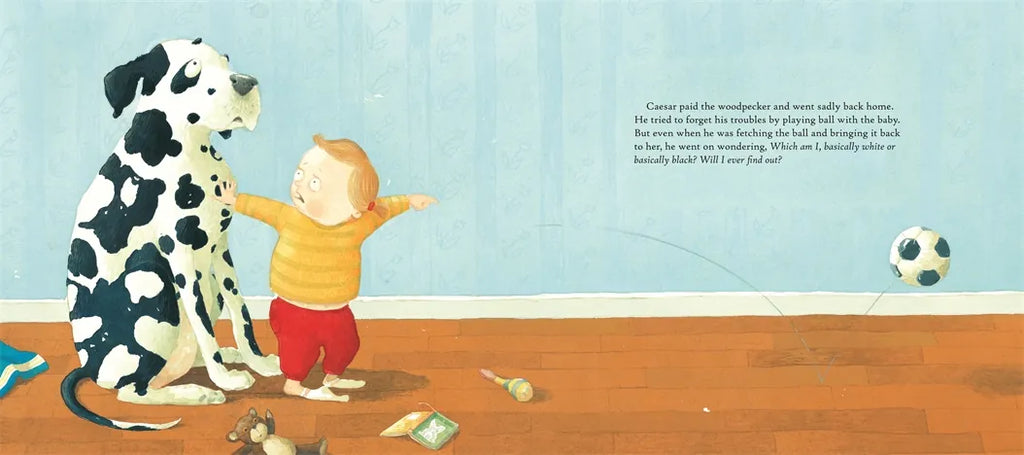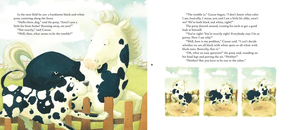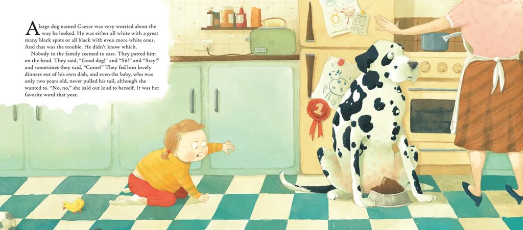 Caesar is a large white dog with a great many black spots. Or is he a large black dog with even more white spots? That’s the trouble: he doesn’t know which, and though nobody in the family seems to care, he won’t rest until he uncovers the truth. So off he traipses, beseeching one animal after another to find out what color he is, basically. From celebrated poet Maxine Kumin comes a doggedly quizzical hero, brought comically to life by Alison Friend’s expressive watercolors — a lovable picture-book character who ultimately learns that it’s not what’s on the outside that counts.