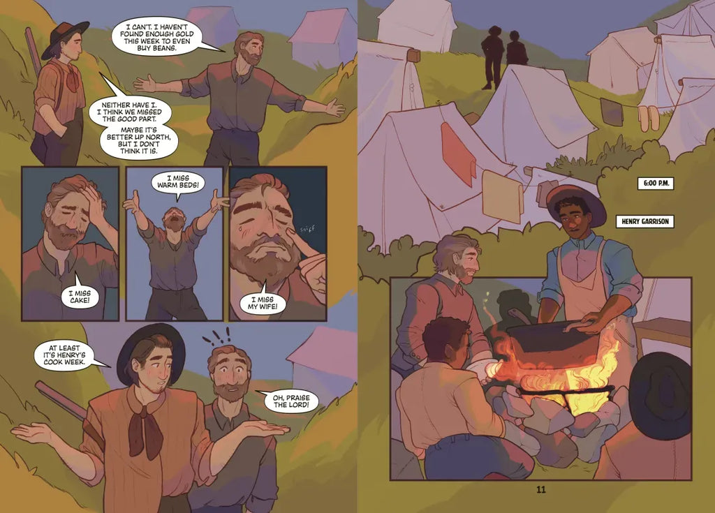 Explore the Gold Rush from the perspectives of William Miller and Henry Garrison, two miners in the Sierra Nevada region, and uncover the often unrelenting conditions of the California gold mines. A story of community, determination, and the search for the American Dream, this graphic novel invites readers to immerse themselves into what life was really like during this pivotal period in American history—brought to life by gripping narrative and vivid full-color illustrations that jump off the page.