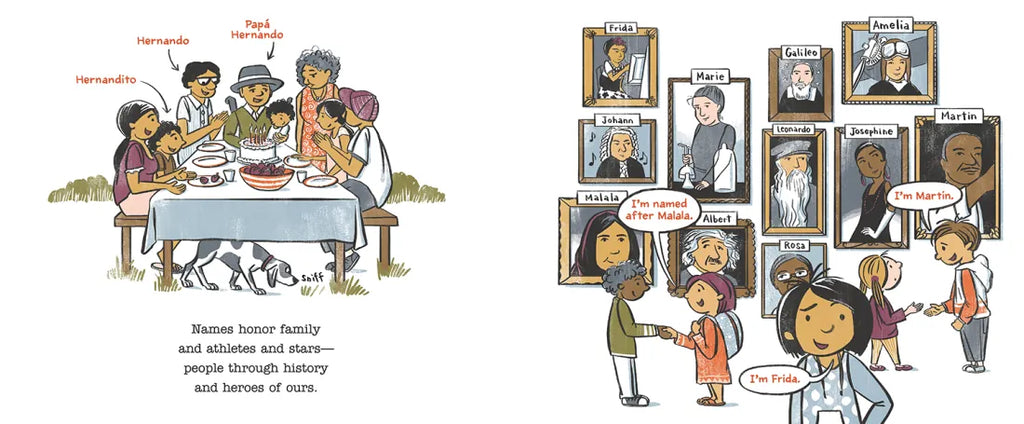 Names hold power. They can be a greeting, provide comfort, act as a warning, or honor our ancestors and heroes. Sometimes growing into a name, or selecting a new one, can take a little time. Names connect us to others and help create who we are and what makes us uniquely special. With an engaging visual narrative buzzing with people and names of all stripes, and a lilting text that’s perfect for reading aloud, the creator of The Favorite Book and Do You Believe in Unicorns? offers a celebratory and affirming story that will have readers reflecting on their names—and proudly sharing them.