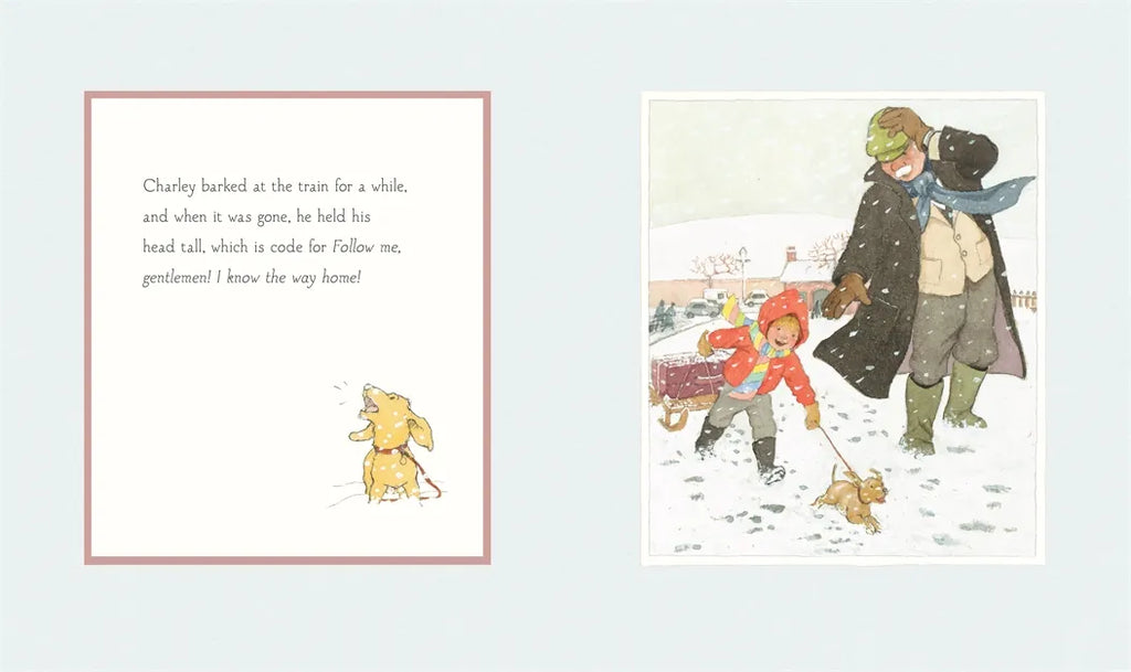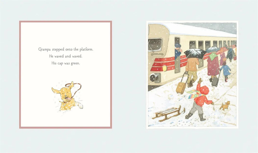 It’s a snowy day, and Grampa is coming by train for a visit. Henry can’t wait! He sets out with Charley, his beloved pup, pulling a sled for Grampa’s suitcase. To pass time at the station, Henry tells Charley about Grampa — how he has the longest feet and snores wild, and how he doesn’t know how to be friends with a dog. At last Grampa arrives, but when a sudden gust of wind blows his hat away, Charley disappears into the whirling snow — and returns, to their relief, carrying Grampa’s green cap! With lyrical simplicity, Amy Hest narrates a small, turning moment in the life of a child and a grandparent, while Helen Oxenbury renders every gesture and detail with signature warmth and charm.