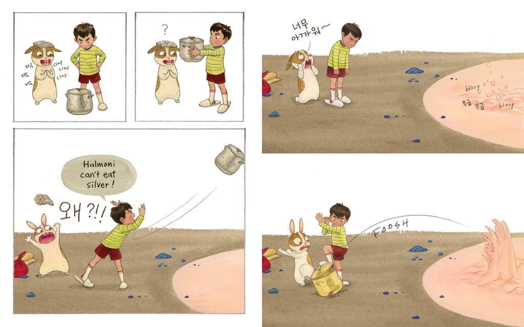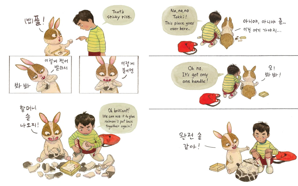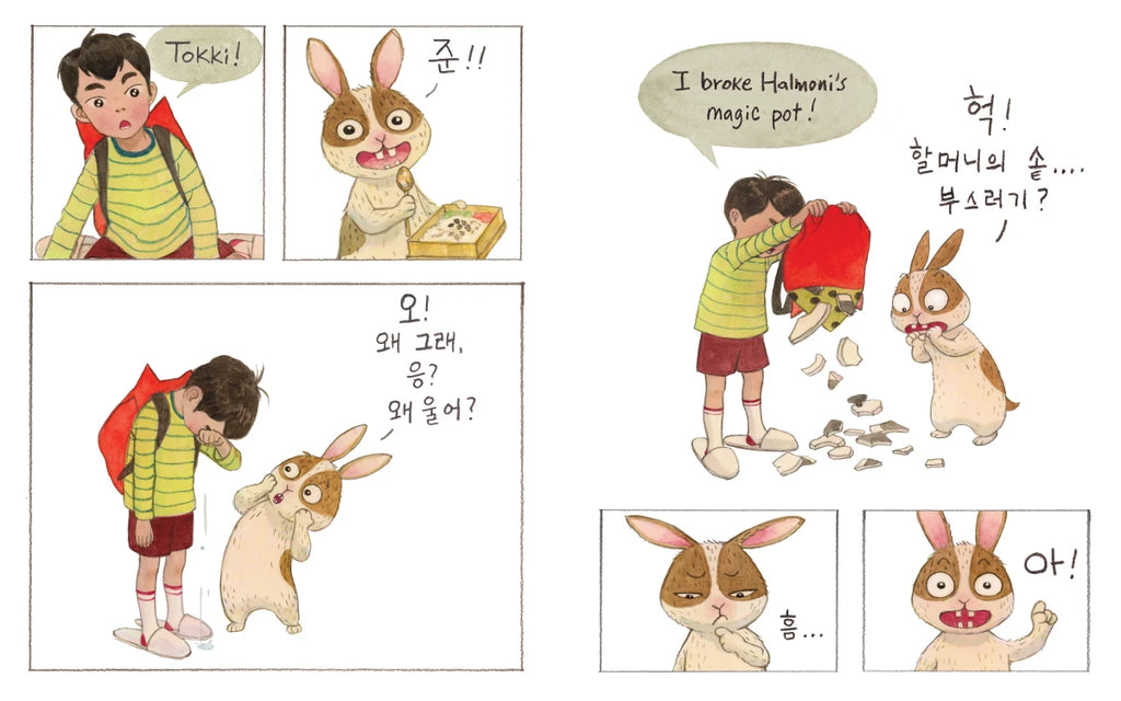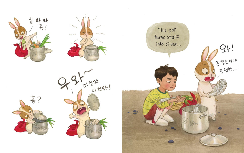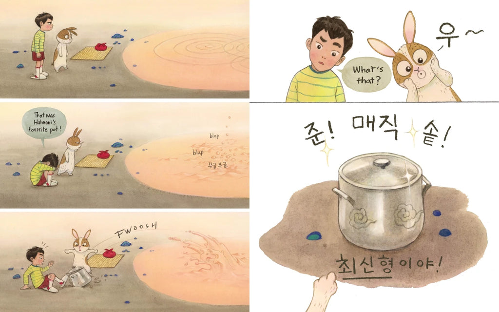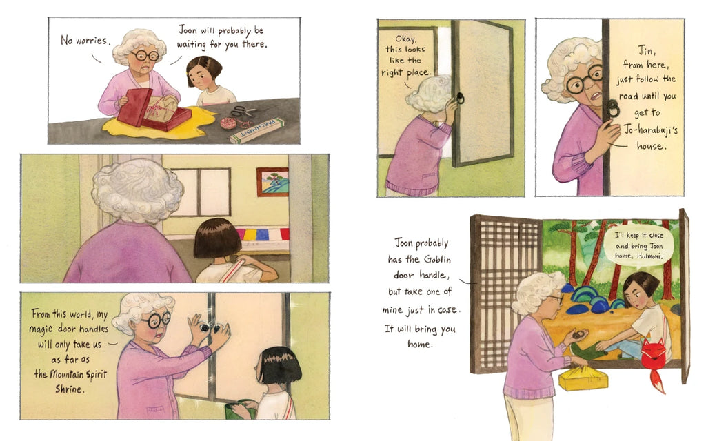Luckily, Halmoni has a hunch. She sends Jin on an errand through her magical portal into the wondrous world of Korean folktales with its dazzling landscapes and curious characters. In this land of enchantment, Jin and Joon meet familiar friends and foe before reuniting to embark on a new mission to fix Halmoni's magic pot.