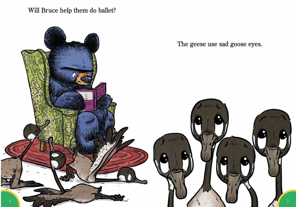 Bruce, the ever-grumpy bear, helps the geese prepare for ballet in this book perfect for readers who are ready to stretch their wings.