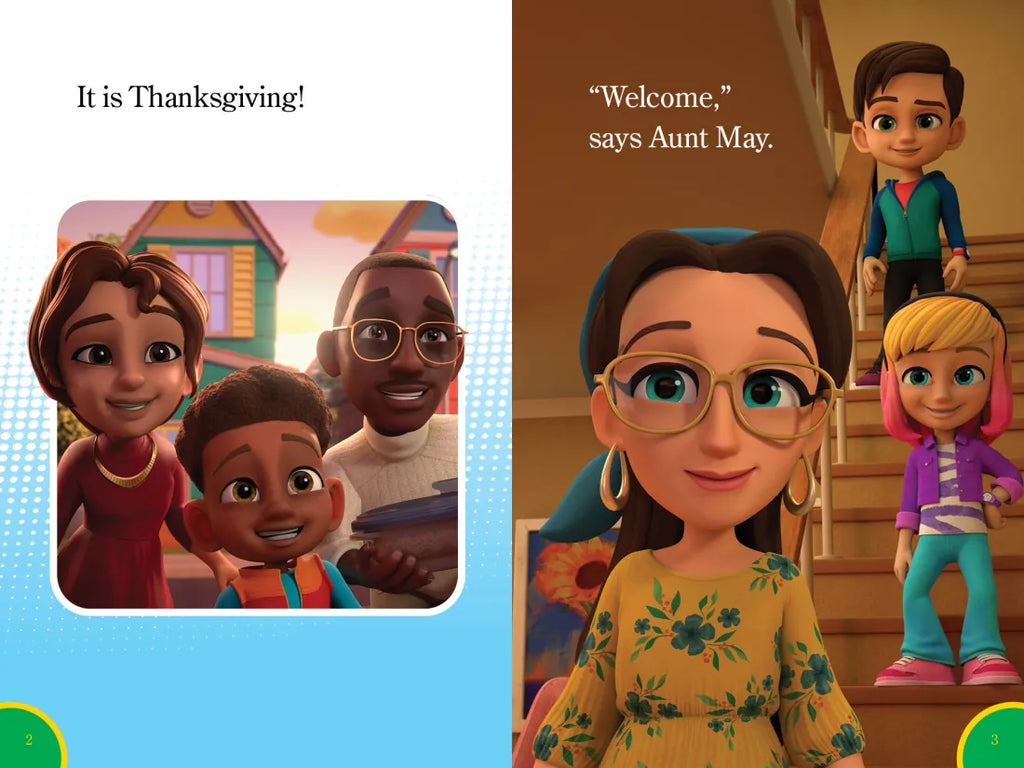 When all roads into the city are blocked on Thanksgiving, Team Spidey works together to clear them so travelers can reach their holiday destinations in time for Thanksgiving dinner. This 32-page level 1 reader relives the excitement of this Spidey and His Amazing Friends holiday episode.
