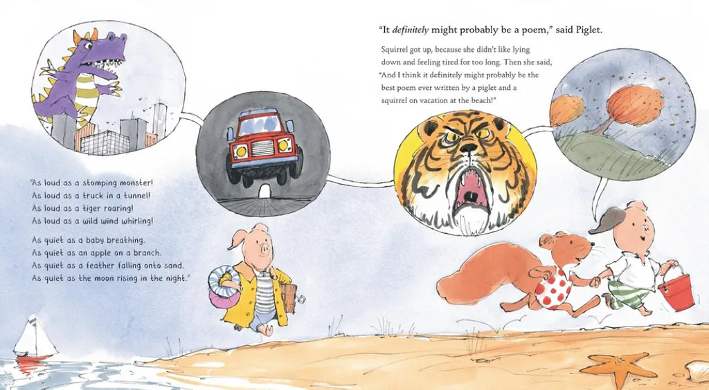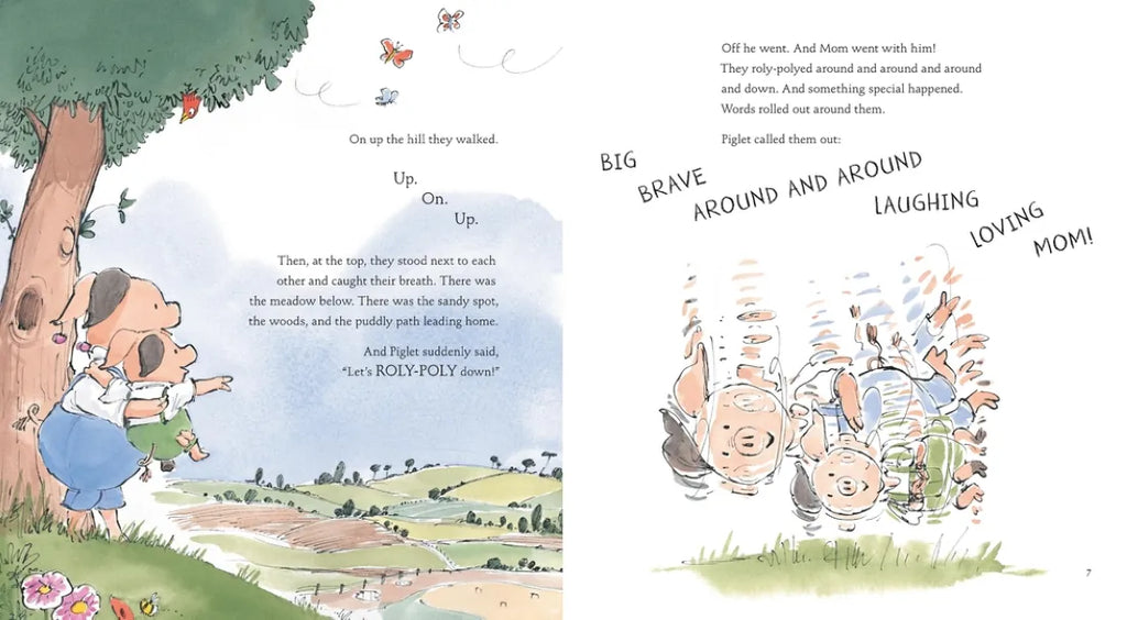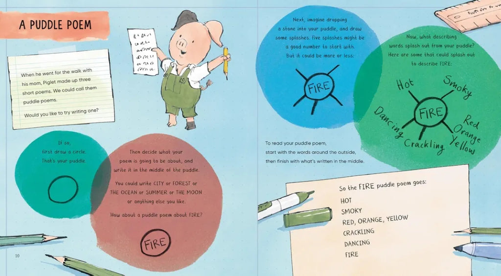 When Piglet picks up a stone and drops it into a puddle, something special happens … words splash out: Wet, Fresh, Earthy, Sploshing, Sunshiny, Puddle. Piglet is a poet!