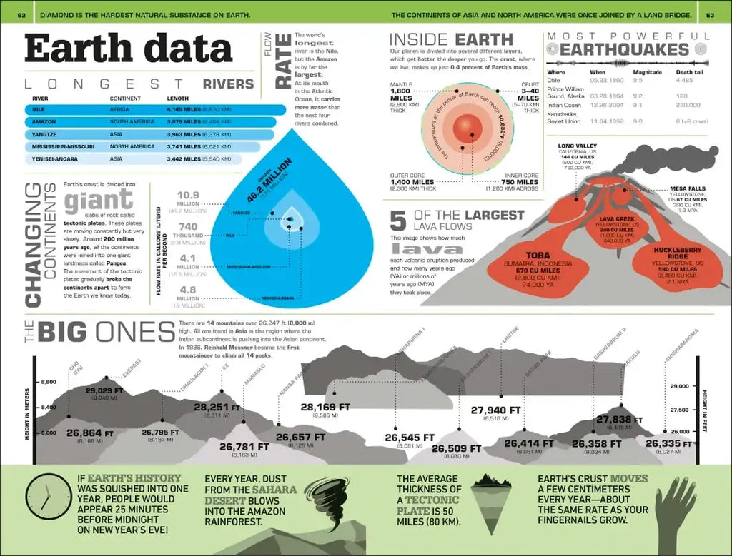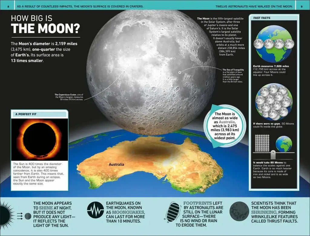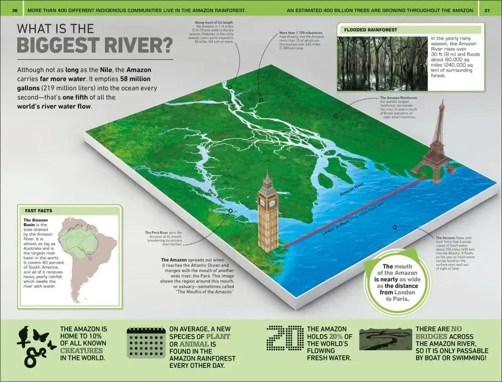 Wow your friends and amaze your family with hundreds of new facts in this fun-filled, picture-packed book. From the tiniest microchip to our unimaginably enormous Universe, no subject is left unexplored for this groundbreaking reference title. Astounding images, inspiring visual comparisons, and informative graphics combine in one unforgettable learning experience.