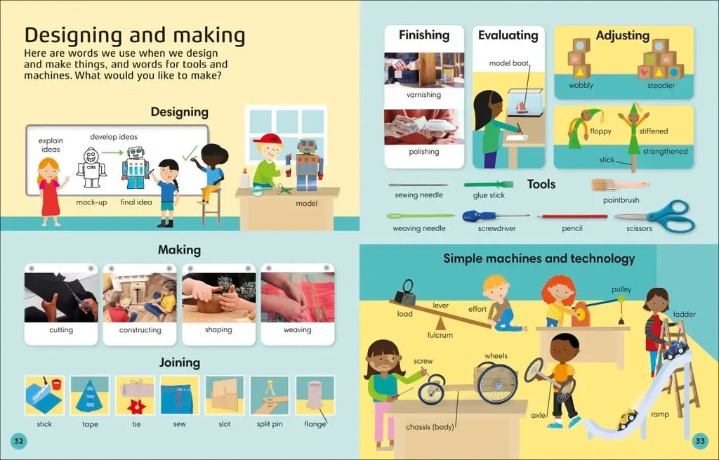 Written by primary language specialist Gill Budgell, the picture-packed pages feature vocabulary to help children with key school subjects, including English, math, science, geography, history, art, and computing.