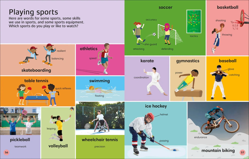 From verbs that are used in sports and nouns that name mathematical shapes to adjectives that describe materials, each page strengthens children's language skills and is visually exciting, accessible, and appealing.