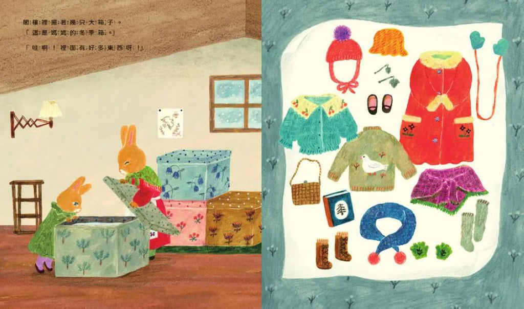 裁縫師米可小姐與客人小兔兔討論服裝需求的過程中,呈現充滿冬天特色的景緻、事物,包括玩耍的活動、聲音、觸感……打開五種感官,沉浸式體驗冬天的氛圍。