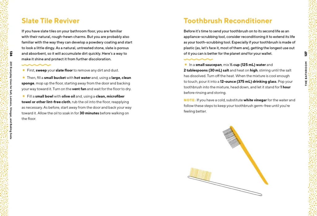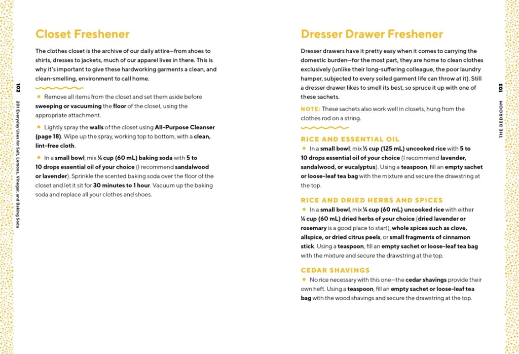 Learn how to use salt, lemons, baking soda, and vinegar (plus a few other versatile items) in hundreds of different combinations to clean the home and care for yourself, your family, and your pets. Just like these inexpensive but mighty ingredients, this book is good for the planet and your wallet.