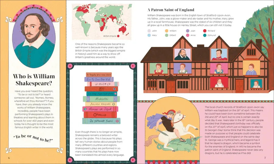 Eight exciting Shakespeare retellings for kids, alongside the story of his life and the history of Tudor London, all beautifully illustrated.