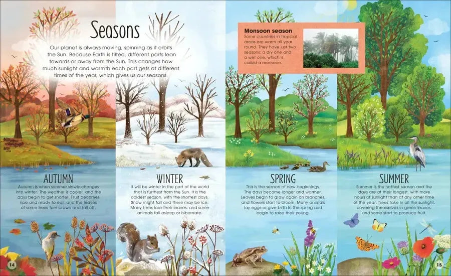 Day turns to night, plants flourish and then wither away, volcanoes erupt, and rainbows stretch across the pages of this colorful book. Stunning illustrations are combined with the dazzling and up-to-date photography to help young enthusiasts learn all there is to know about the place they call home. Starting at Earth’s fiery core, then journeying upwards through clouds, rain, and wind before soaring over the Amazon rainforest and gliding across Earth’s icy poles, readers will discover the extraordinary wonders of our ever-changing planet.