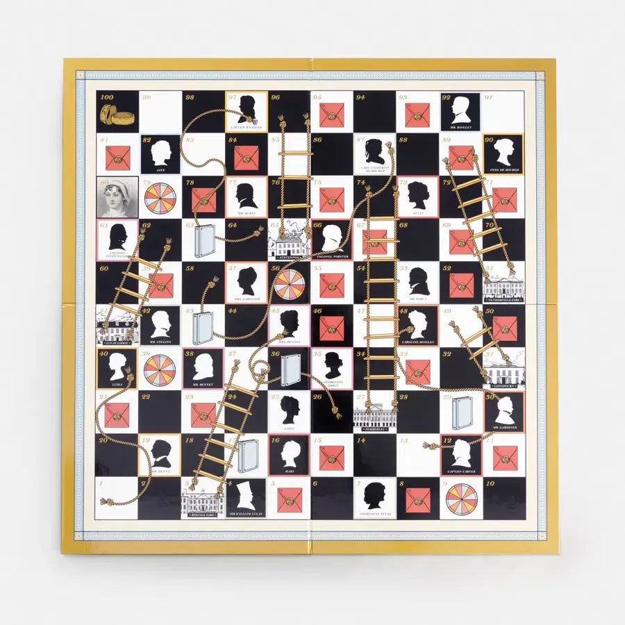 Test your Jane Austen IQ as you help your favorite characters make their perfect romantic matches with this charming Pride and Prejudice meets Chutes and Ladders board game.