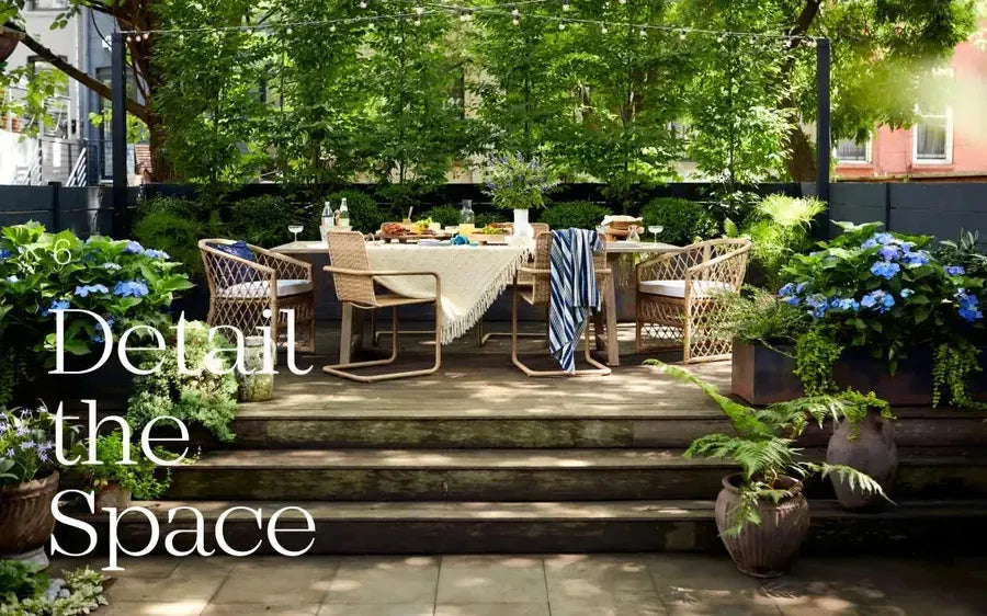 Adding the finishing touches: the pillows, throws, hurricane lanterns, and other details that will make you want to linger long after sunset