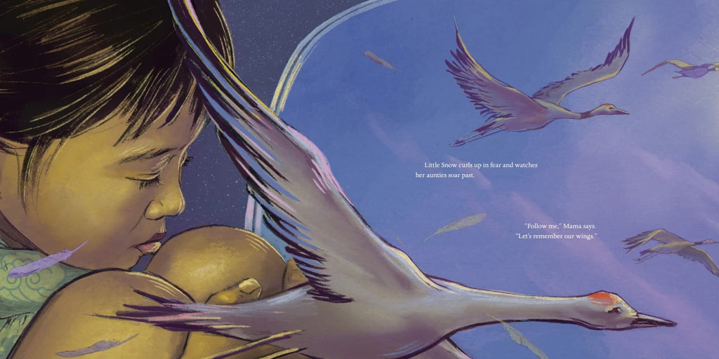 Little Snow can't remember the last time she was on an airplane, and is afraid of the long journey from her big city to the vast Chinese countryside Mama comes from. To soothe her nerves, Mama tells Little Snow the story of how their ancestors travelled before borders and countries existed—flying through the skies as cranes. What follows is a tender story of reconnecting with family during the holidays and remembering the magic of who you are in this gorgeous picture book debut from author-illustrator Jess X. Snow.
